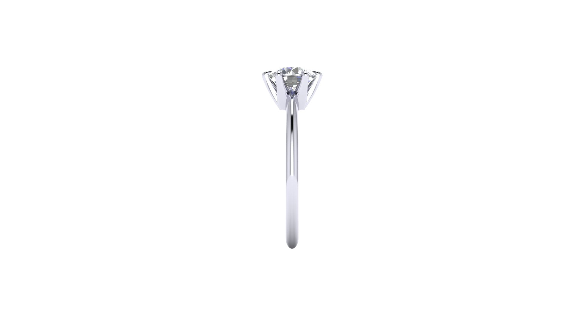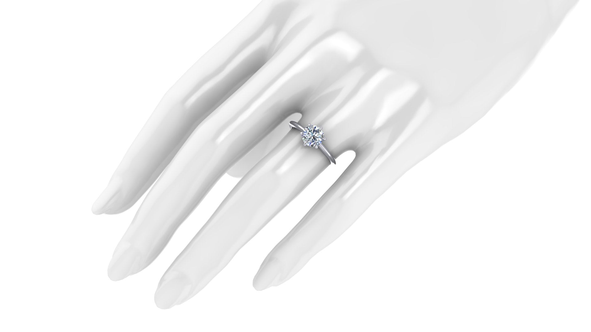GIA Certified 1.06 Round diamond, G color, VVS2 clarity with Triple Excellent Specs, in a high demand minimalistic, thin, low setting, four claw prongs, rounded wire shank.