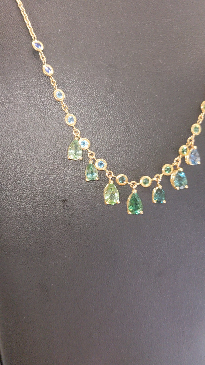 4.95 carat Sapphire Emerald Aquamarine Tourmaline necklace 18k yellow